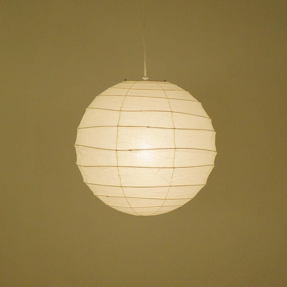 直径約60cmの球体状のシルエットに竹ヒゴがランダムに巻かれた、AKARIの中で最もベーシックな形の一つです。