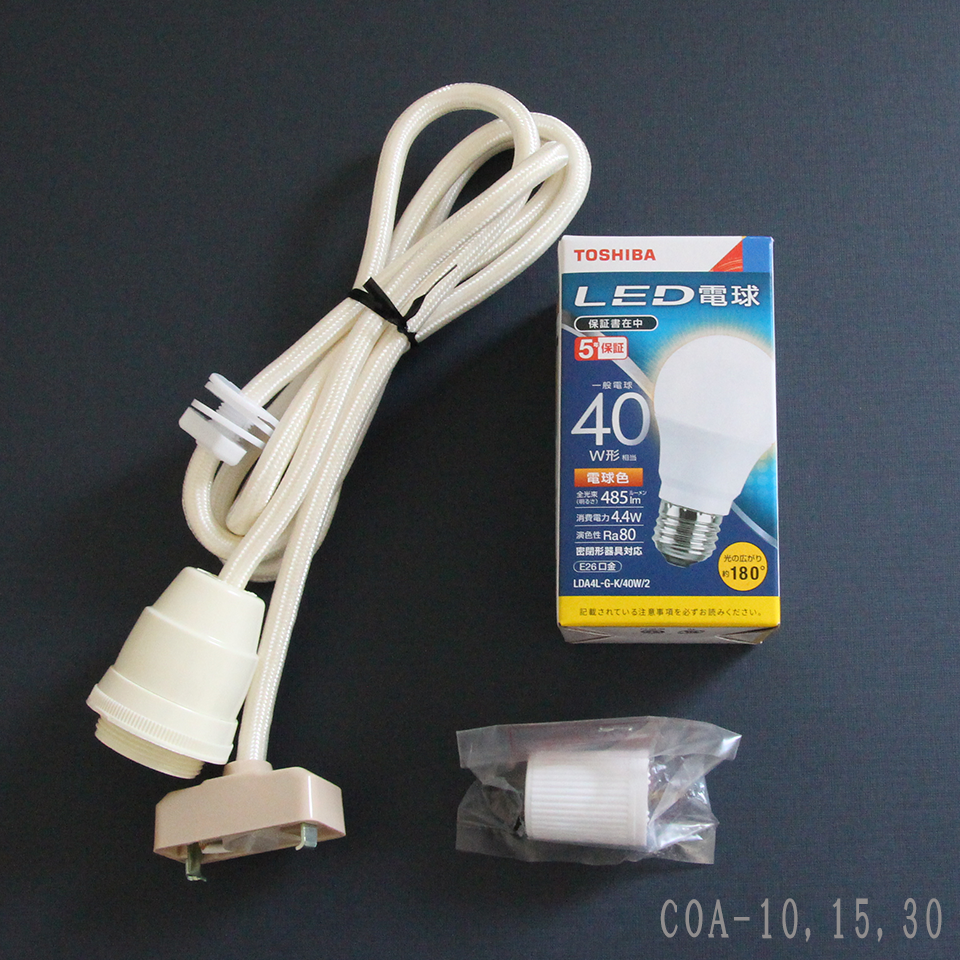 - LED電球40W相当 電球色 1灯式 コード(白)